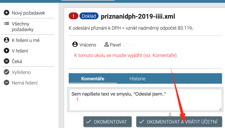 Je potřeba napsat komentář