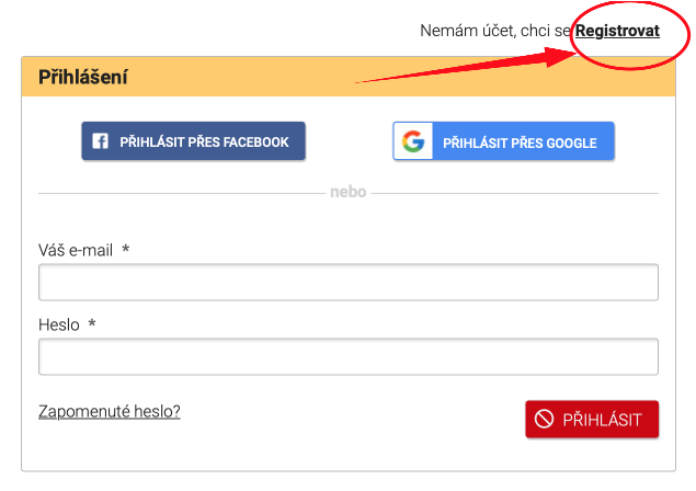 a klikněte na Registrovat